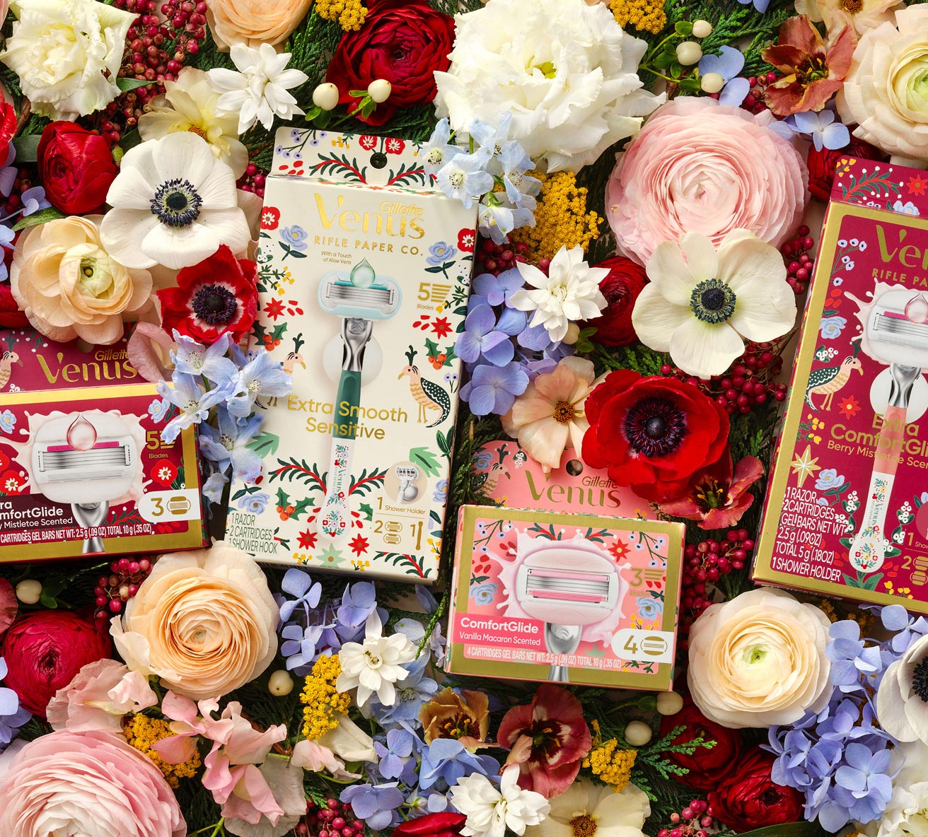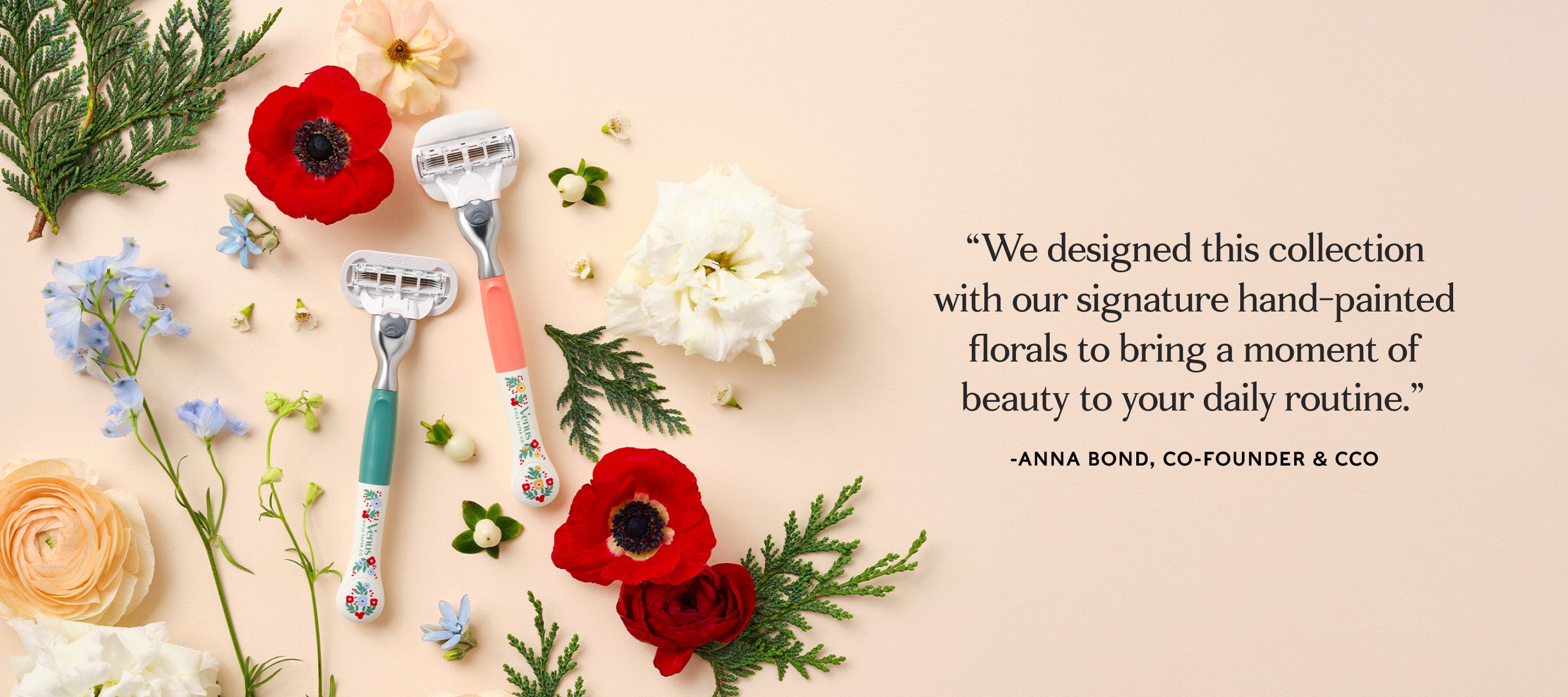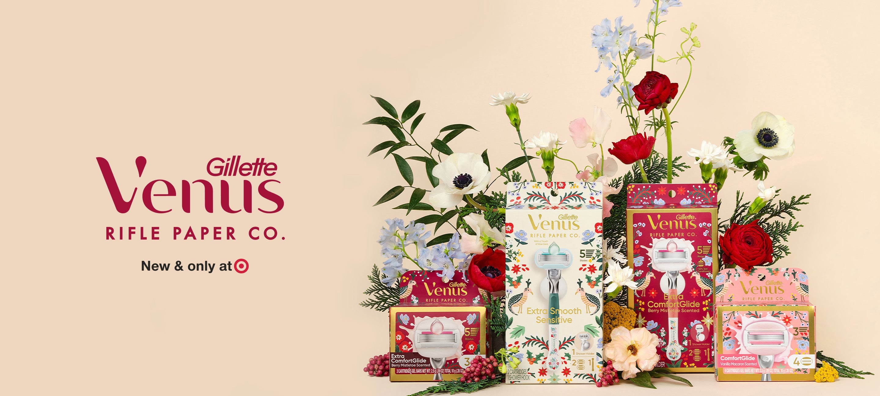 A new season is blooming, along with the latest Venus + Rifle Paper Co. collection: New, limited edition razors, blades, and shave products, illustrated with our signature spring florals.