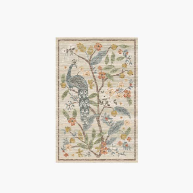 Laurel Peacock Garden Power Loomed Rug - Cream