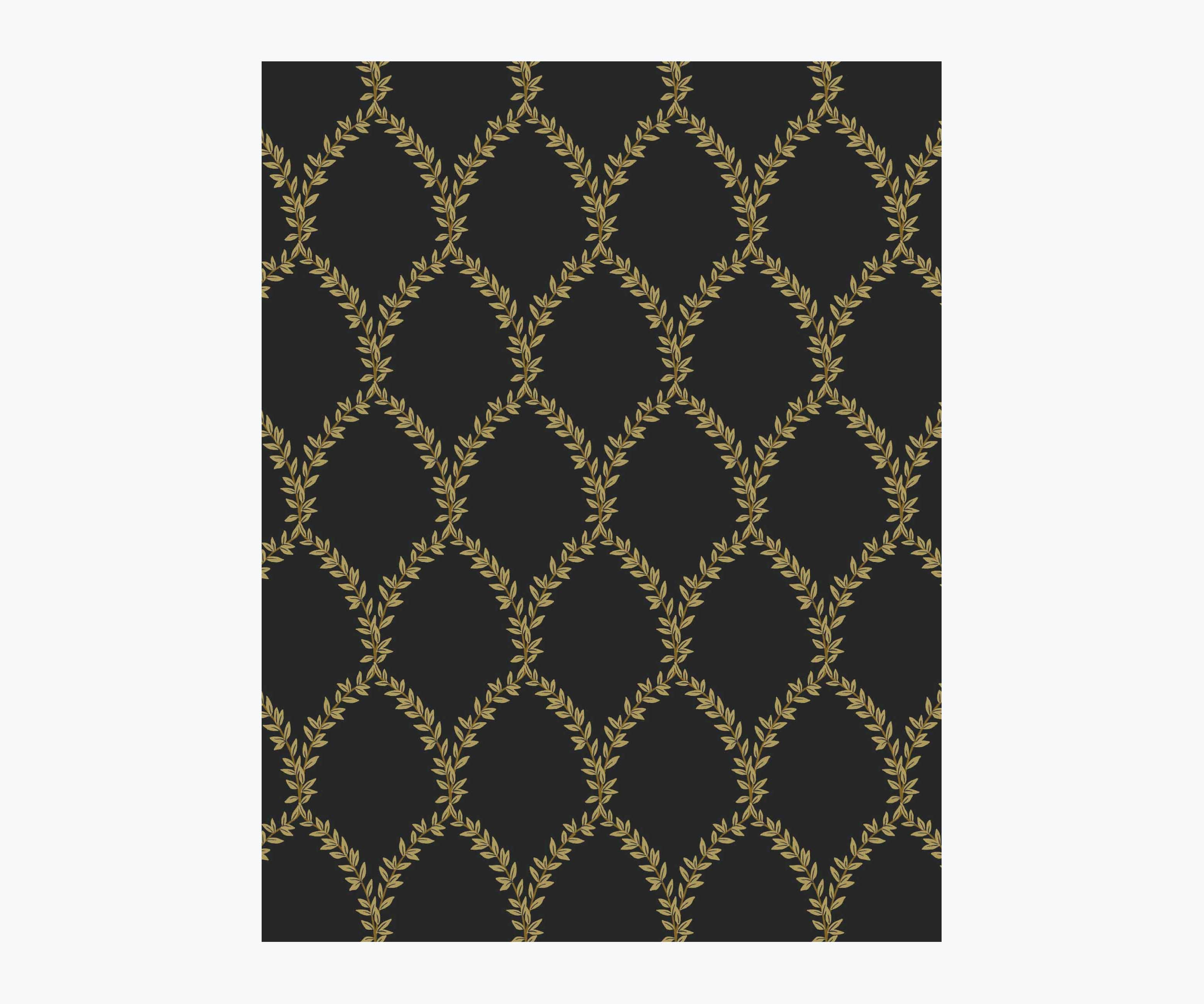 Laurel Wallpaper Sample - Metallic Gold & Black
