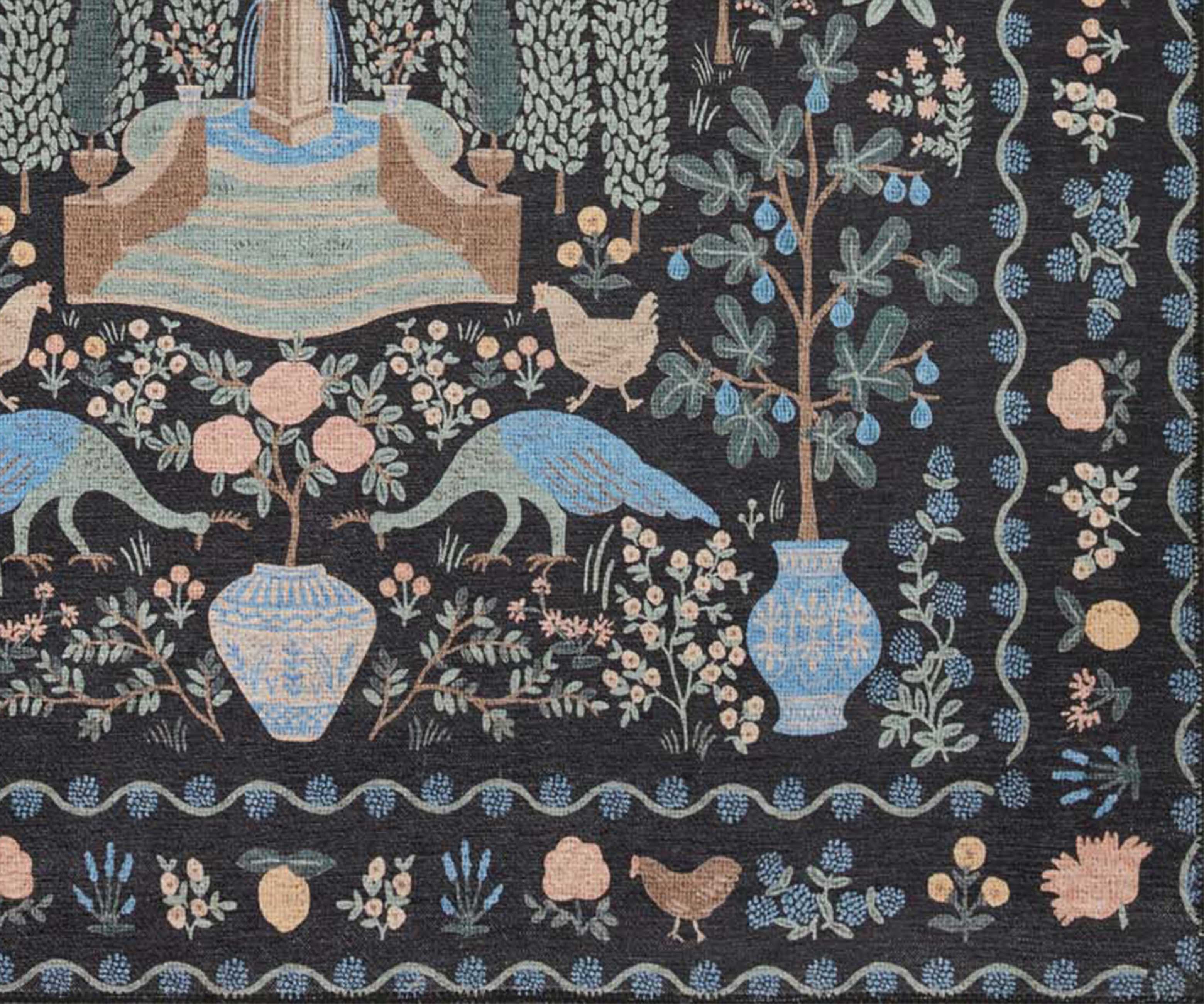 Purchased the menagerie rug for a play area for my granddaughters. Love the different animals and lemon trees in the design. Beautiful rug.