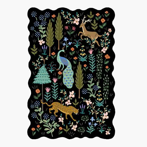 I love the extra touch of the scalloped edges- the colors- and the charm of the animals and flowers in the design.