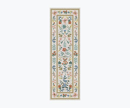 I wanted a rug that would coordinate with many pieces of art in a powder room as well as wallpaper also from Rifle Paper Co., purchased but not as yet installed. This rug fit the bill. It needed to be understated as the wallpaper and art are much bolder. I am happy with this rug. It has charm and blends with the stronger elements in the small room. Rifle Paper Co. is such a great source for charm. 3 rooms in my home feature their products.